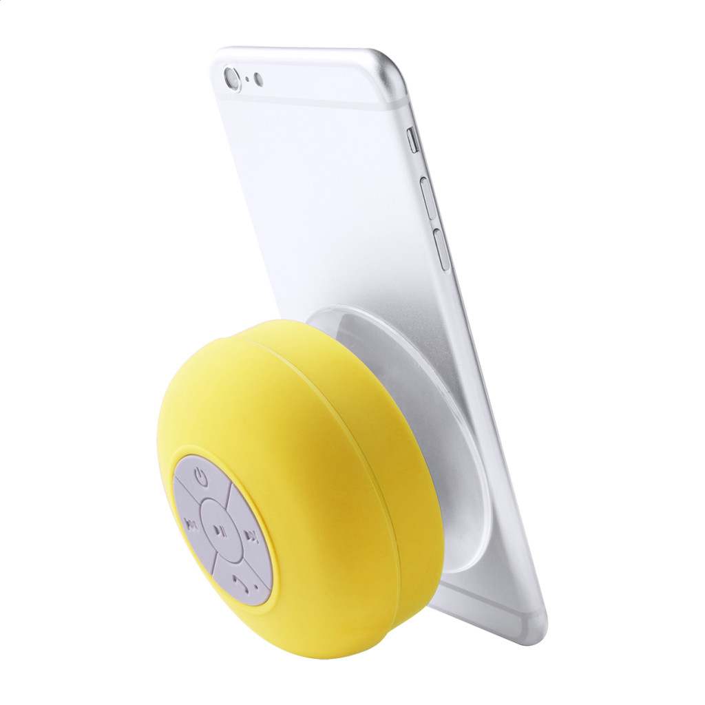 Vezeték nélküli hangszóró gumiborítású házzal és nagyméretű tapadókoronggal. Telefon kihangosító funkcióval és beépített újratölthető akkumulátorral ellátva. USB töltőkábellel szállítjuk. Doboz