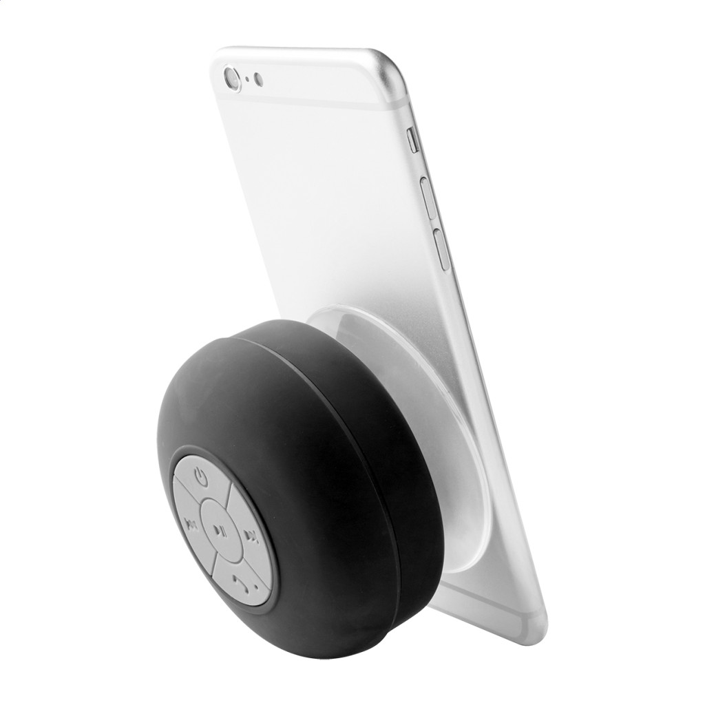 Vezeték nélküli hangszóró gumiborítású házzal és nagyméretű tapadókoronggal. Telefon kihangosító funkcióval és beépített újratölthető akkumulátorral ellátva. USB töltőkábellel szállítjuk. Doboz