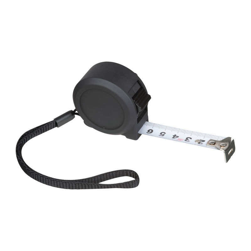 Masszív acél mérőszalag, 3 m-es hosszúsággal, robusztus műanyag házban, nagy számokkal, állandó rögzítővel és praktikus nejlon kézszíjjal. Reklámajándék, üzleti ajándék. |