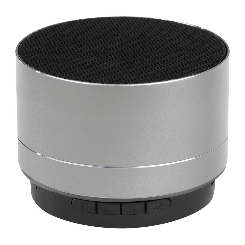 Kerek bluetooth hangszóró alumíniumból, 300 mAh beépített újratölthető akkumulátorral, rádióval, TF kártya hellyel, mikro USB töltőkábellel és villogó LED lámpával az alján. Töltési idő 2h, lejátszási idő 40-70 perc, 10 m hatótáv. Reklámajándék, üzleti ajándék. |