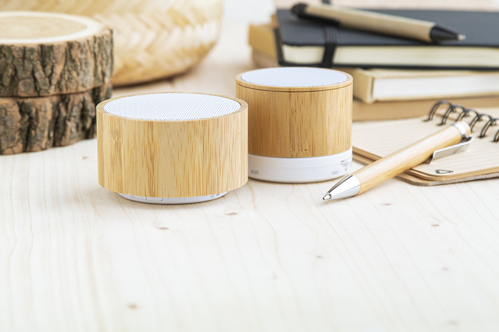 Vezeték nélküli hangszóró bambusz borítással, beépített újratölthető akkumulátorral, FM rádióval és telefon kihangosító funkcióval. USB töltőkábellel szállítjuk. Eleje