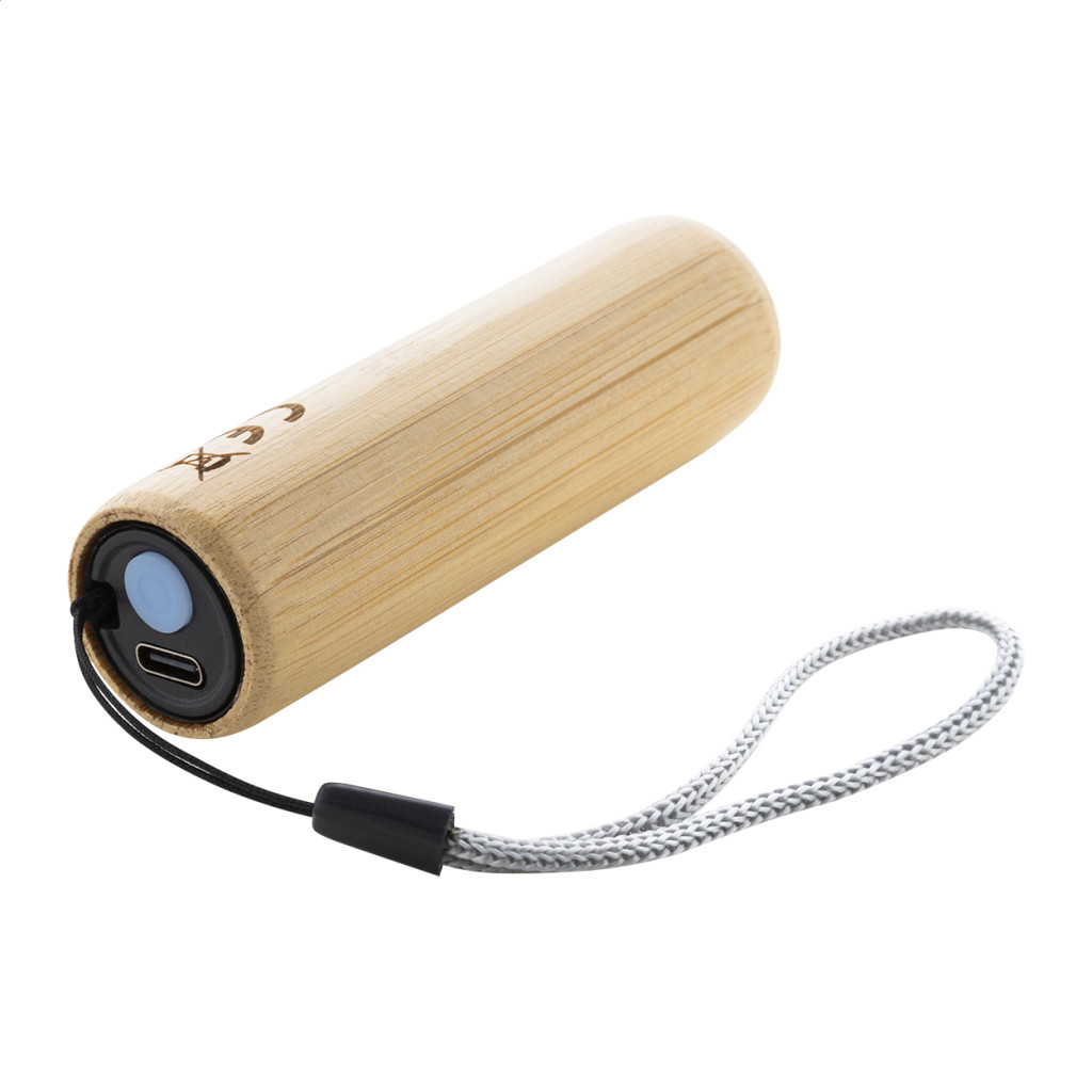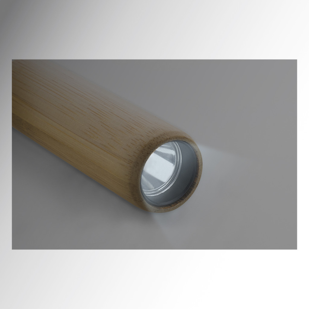 Bambusz zseblámpa beépített USB újratölthető akkumulátorral (320 mAh), 1 LED lámpával és hordszíjjal. 3 világítási móddal. USB töltőkábellel. Jobb oldal