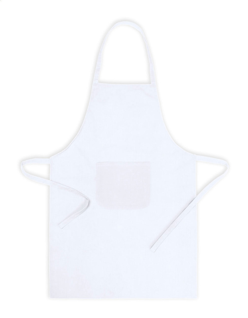 Színes kötény elülső zsebbel. 35% pamut, 65% poliészter. Zseb fölött