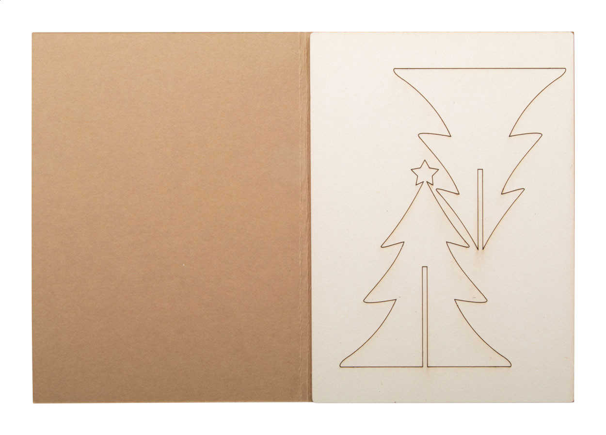 Egyedi grafikával, kraft papírból és cellulóz lemezből készült karácsonyi üdvözlőlap összerakható karácsonyi asztaldísszel. Mindkét oldalon egyedileg grafikázható. C6 borítékkal szállítjuk. Minimális rendelési mennyiség 100 db. Külső borító