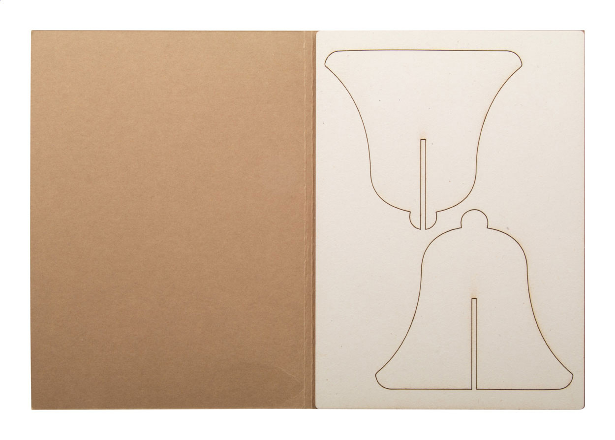 Egyedi grafikával, kraft papírból és cellulóz lemezből készült karácsonyi üdvözlőlap összerakható karácsonyi asztaldísszel. Mindkét oldalon egyedileg grafikázható. C6 borítékkal szállítjuk. Minimális rendelési mennyiség 100 db. Külső borító