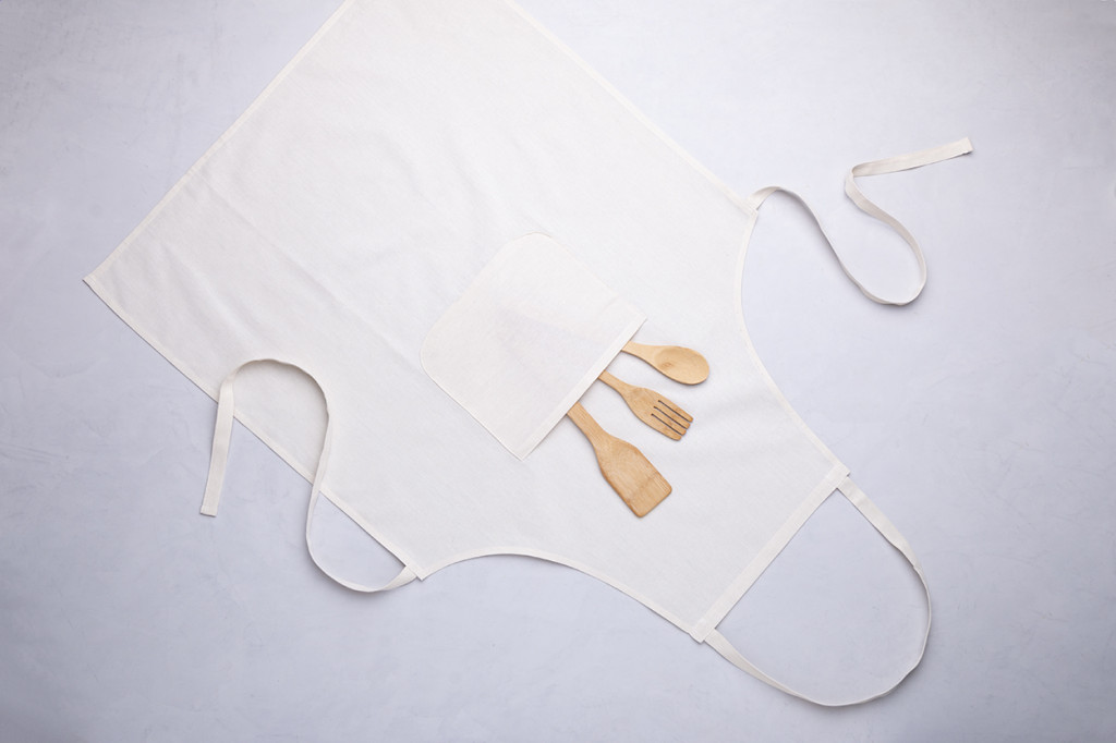 100% pamutkötény elöl zsebbel, 150 g/m². Zseb fölött