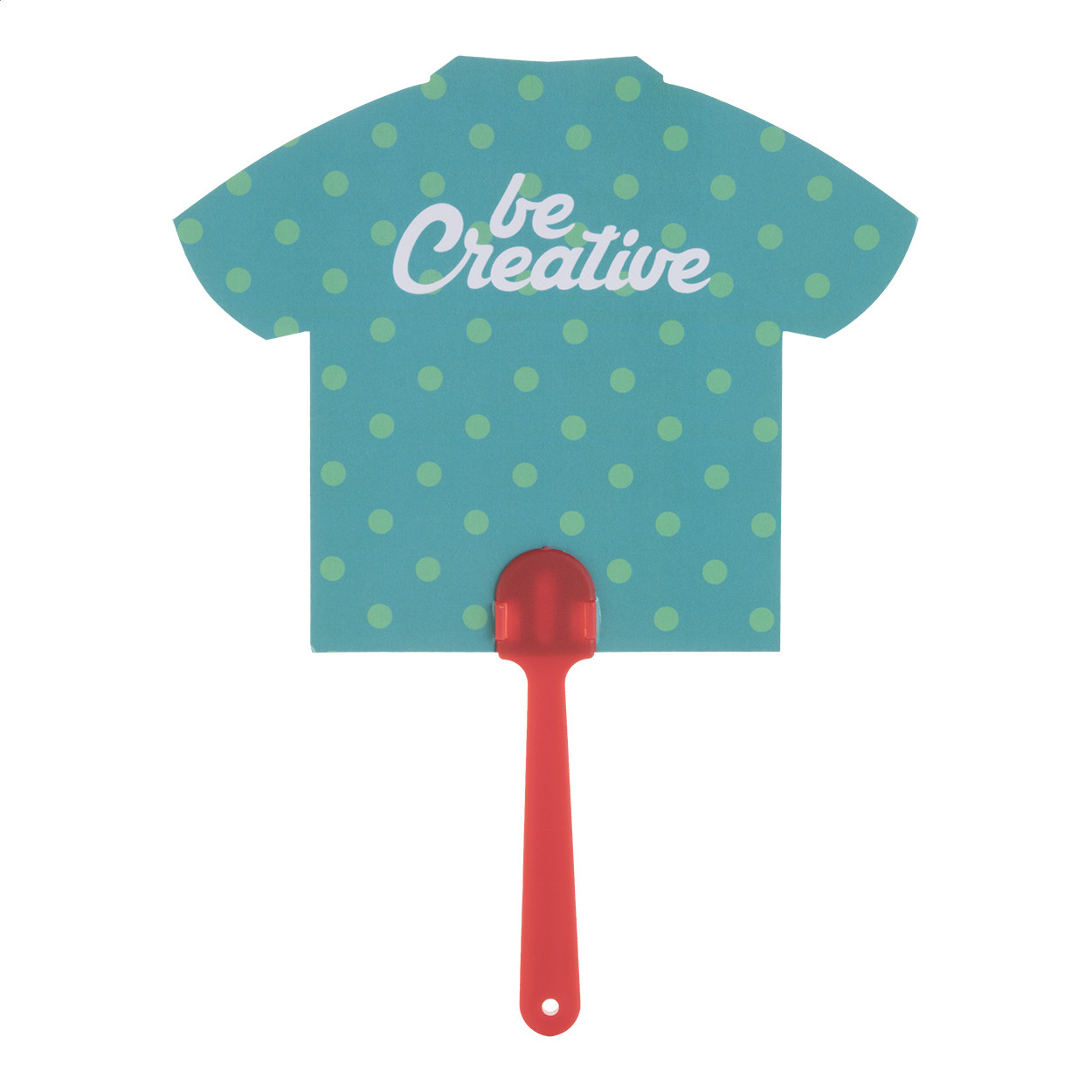 Laminált papírból készült, egyediesíthető legyező, műanyag nyéllel. A papír rész mindkét oldalon egyedi grafikával készül. Minimális rendelési mennyiség: 100 db.