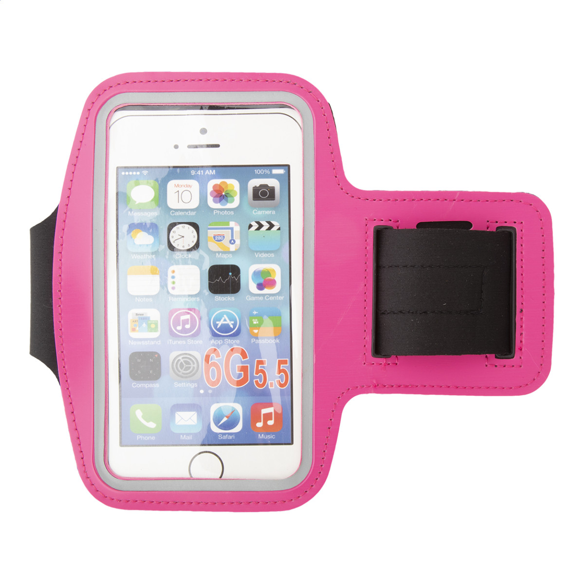 Felkarra rögzíthető PU bőr mobiltelefon-tartó, érintőképernyős ablakkal és fényvisszaverő részekkel. Max. 6 colos kijelző méretű telefonokhoz. Eleje