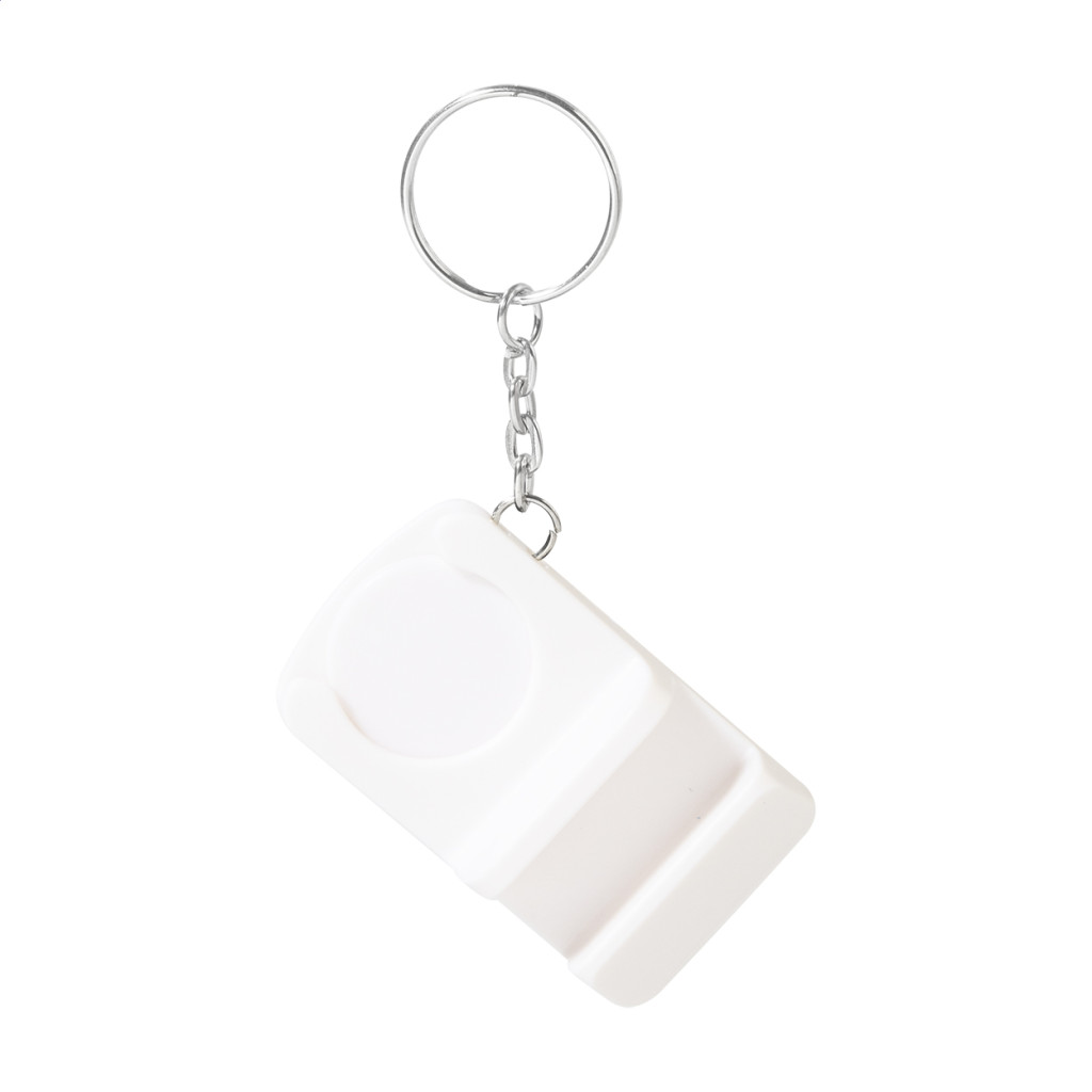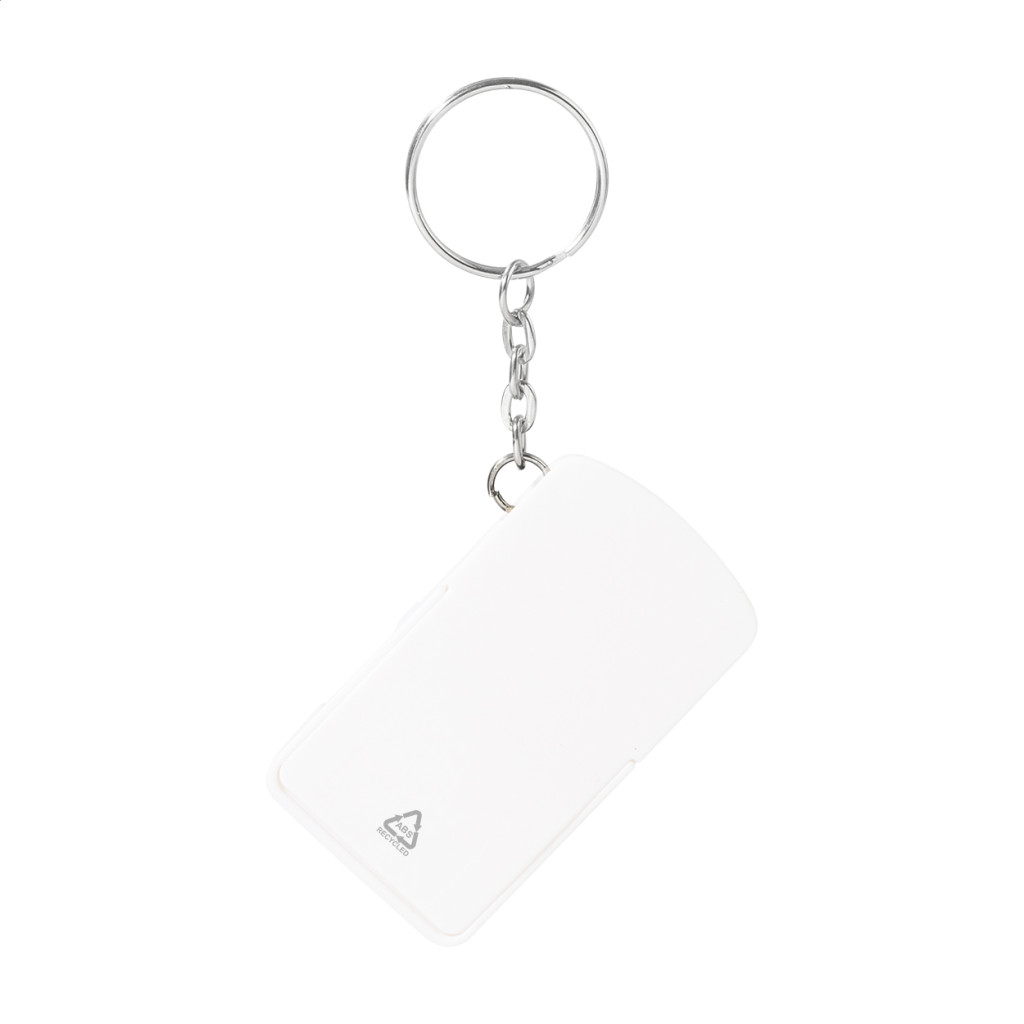 Újrahasznosított ABS anyagból készült bevásárlókocsi érme kulcstartó mobiltartóval. Az érme mérete: ø23×2 mm. Hátulja