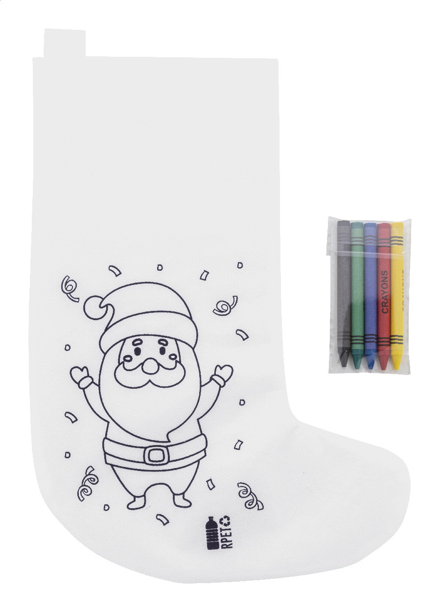 Karácsonyi színezhető zokni RPET non-woven anyagból, 5 db zsírkrétával. Eleje