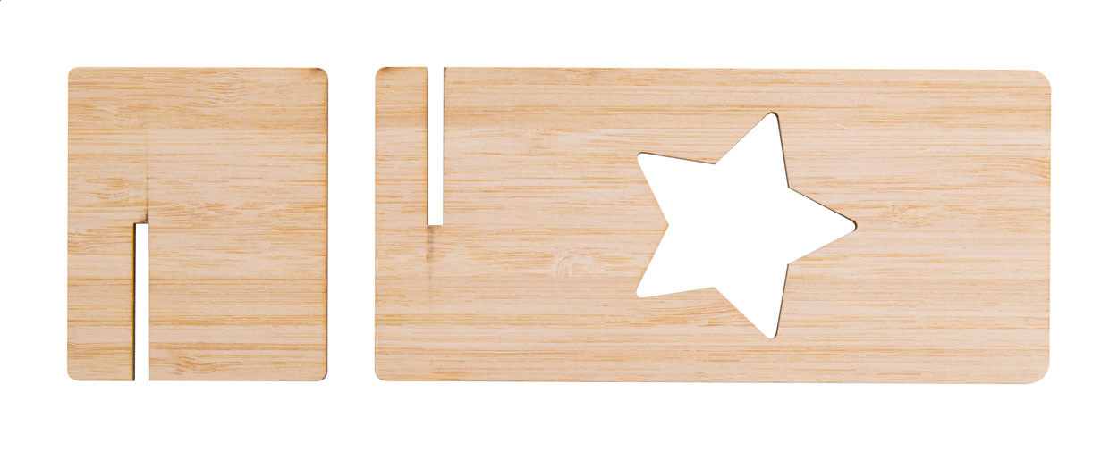 Asztali mobiltelefon tartó rétegelt bambusz lemezből, karácsonyi formájú kivágással. A terméket lapra szerelve szállítjuk. Eleje - alja
