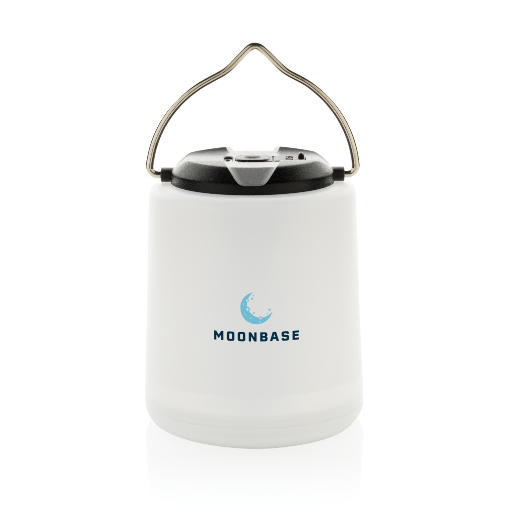 A Limio RCS újrahasznosított műanyag, hordozható, újratölthető asztali lámpa sokoldalú világítási megoldás benti és kinti használatra egyaránt. Asztalra állítva vagy felakasztva használható. USB-C-n keresztül tölthető akkumulátorral, amely akár 4 órás világítást biztosít és mindössze 2 óra alatt teljesen feltöltődik. A LED lámpa legfeljebb 300 lument biztosít. Három üzemmódot kínál: erős, tompított és villogó, a különböző világítási igények kielégítésére. IPX4 vízálló minősítésével nedves körülmények közötti használatra alkalmas. A tok RCS újrahasznosított ABS műanyagból készült. Az RCS-tanúsítvány biztosítja az újrahasznosított anyagok ellátási láncát. Teljes újrahasznosított anyagtartalom: 25% a termék összsúlya alapján. PVC-mentes. FSC kraft dobozban. Reklámajándék, üzleti ajándék. |