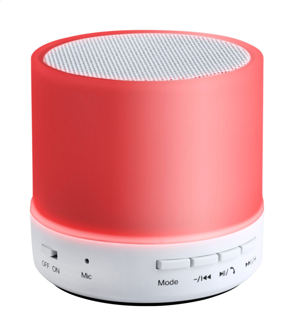 Vezeték nélküli hangszóró műanyag borítással és többszínű LED fénnyel. Telefon kihangosító funkcióval, FM rádióval és újratölthető akkumulátorral. USB töltőkábellel szállítjuk. Eleje