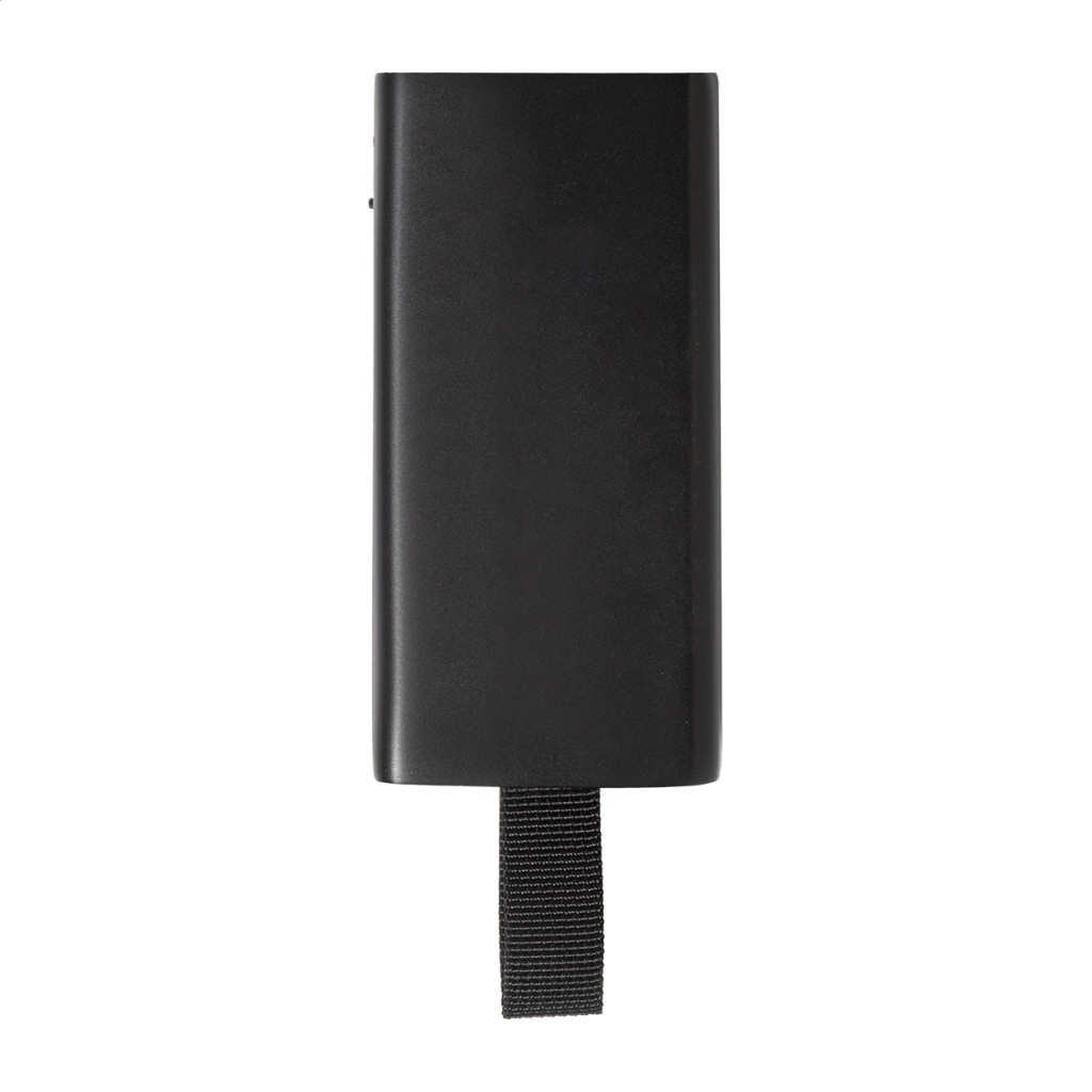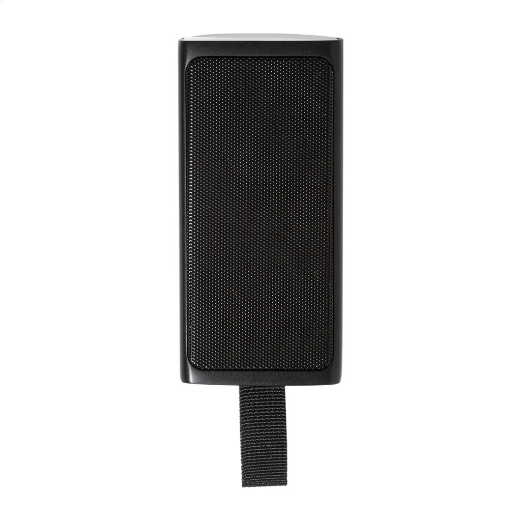Újrahasznosított ABS vezeték nélküli hangszóró fém hálóval, LED zseblámpával és mágneses funkcióval. Beépített újratölthető akkumulátorral (500 mAh). USB töltőkábellel. Bal oldal