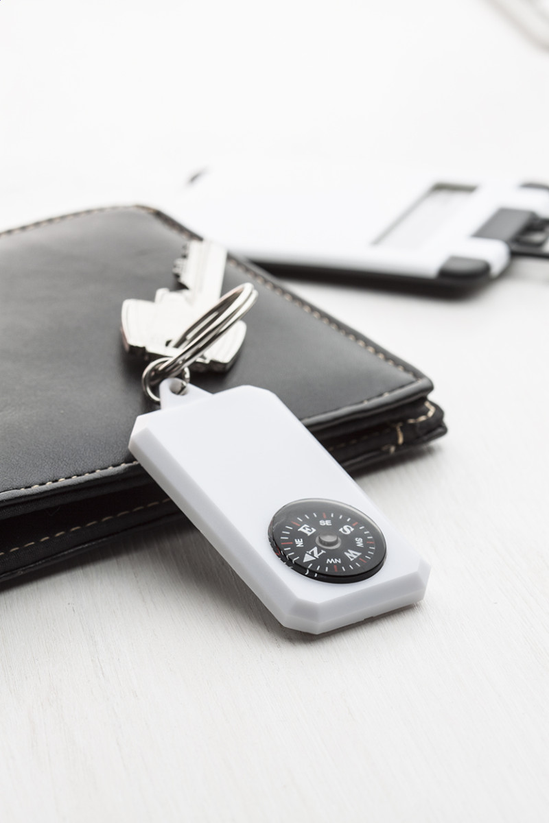 Műanyag kulcstartó iránytűvel és fém kulcskarikával. Eleje