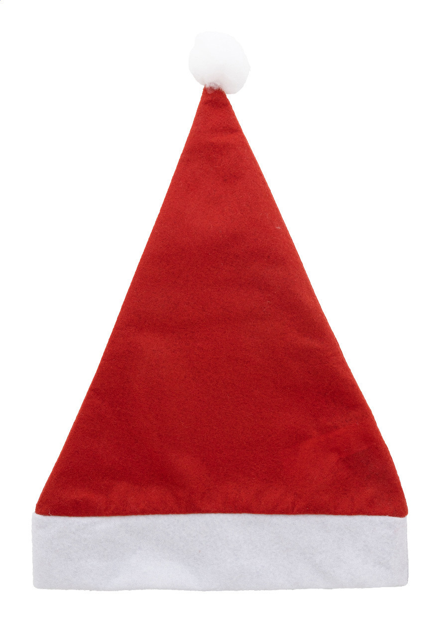 Klasszikus karácsonyi Mikulás sapka gyerekeknek RPET filcből, fehér szegéllyel és bojttal. Eleje - fehér rész
