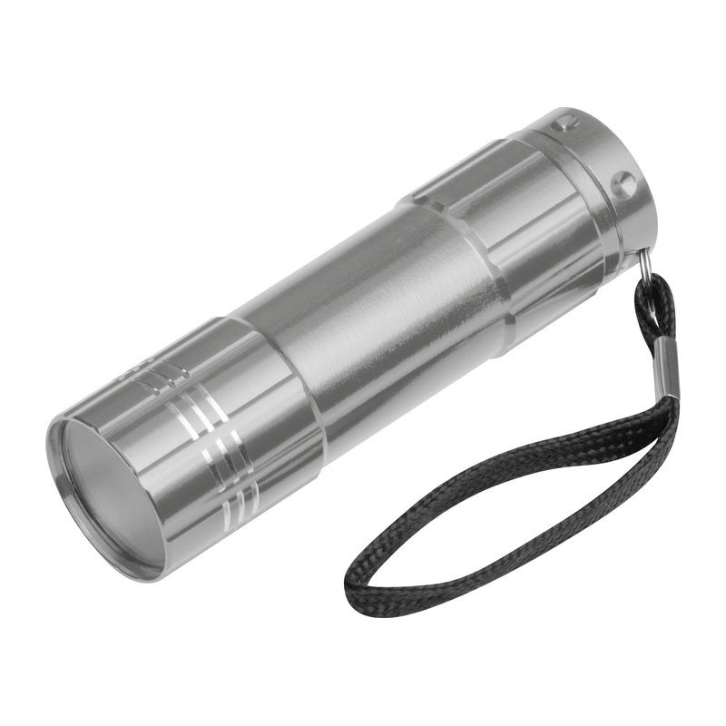 9 LED-es alumínium zseblámpa csuklóra akasztható zsinorral. A működéséhez szükséges 3 db AAA elem nem tartozék, ezek külön megrendelhetőek (cikkszám: 999400). Reklámajándék, üzleti ajándék. |