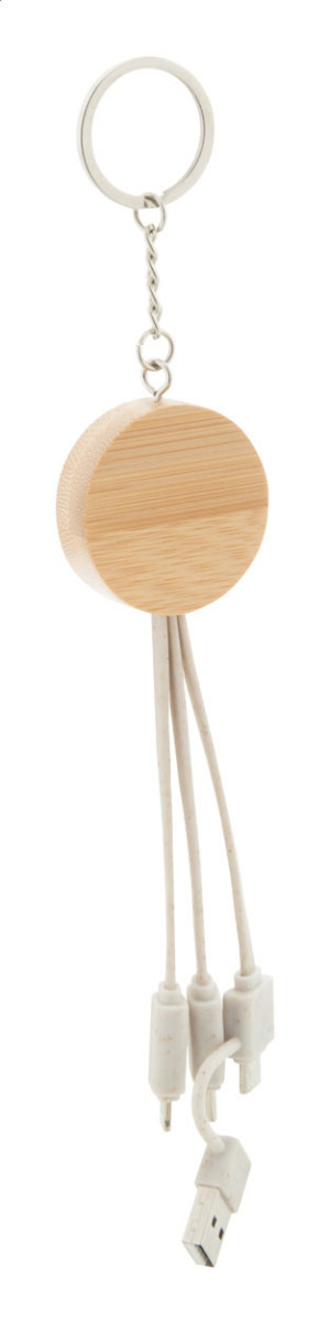 Kulcstartós USB töltőkábel környezetbarát búzaszalma műanyagból és bambuszból. Micro USB, USB-C és Lightning csatlakozókkal. USB és USB-C bemenettel. Teteje