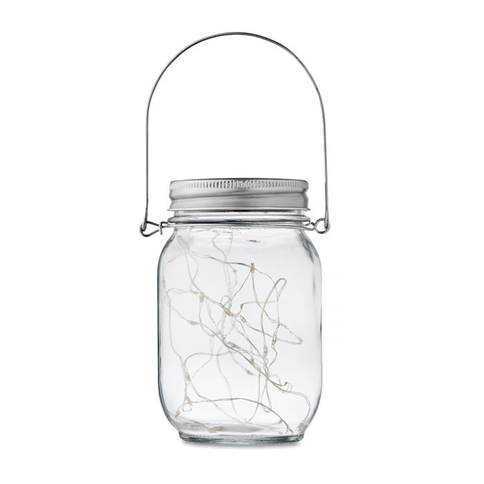 Napelemes befőttesüveg kültéri lámpa 20 LED-es fényfüzérrel. Akasztóval a tetején. Üzemidő kb. 5 óra. 300 mAh nikkel-metálhidrid akkumulátorral. IP44. Reklámajándékok Üzleti ajándékok Céges ajándékok Egyedi reklámajándékok Promóciós termékek Ajándéktárgyak cégeknek Egyedi ajándékok vállalatoknak Üzleti ajándékötletek Reklámajándék katalógus Céges ajándékok karácsonyra Egyedi nyomtatású ajándékok Vállalati promóciós termékek Reklámajándék vásárlás Üzleti ajándékcsomagok Céges ajándéktárgyak |