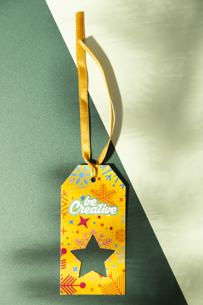 Egyedi gyártású, full-colour nyomtatott papír karácsonyi ajándékcímke kivágott karácsonyi motívummal és arany szalaggal. Az ár tartalmazza az egyik oldal digitális nyomtatását. Minimális rendelési mennyiség: 100 db. Eleje