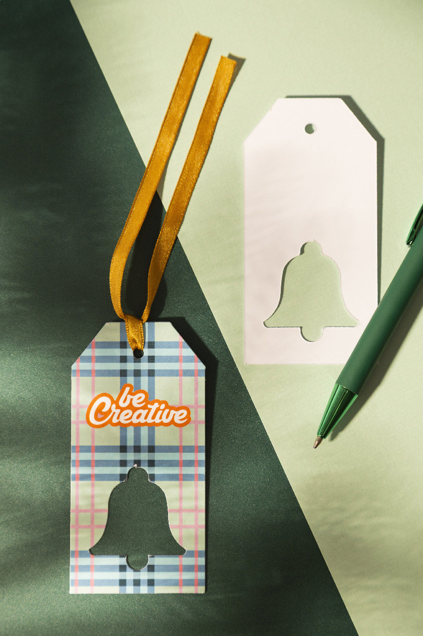 Egyedi gyártású, full-colour nyomtatott papír karácsonyi ajándékcímke kivágott karácsonyi motívummal és arany szalaggal. Az ár tartalmazza az egyik oldal digitális nyomtatását. Minimális rendelési mennyiség: 100 db. Eleje