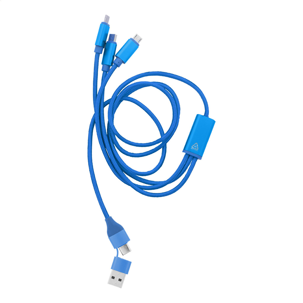 Újrahasznosított alumínium és RPET USB töltőkábel micro USB, USB-C-vel és lightning csatlakozókkal. USB és USB-C bemenettel. Kábel hossza: 100 cm. Eleje