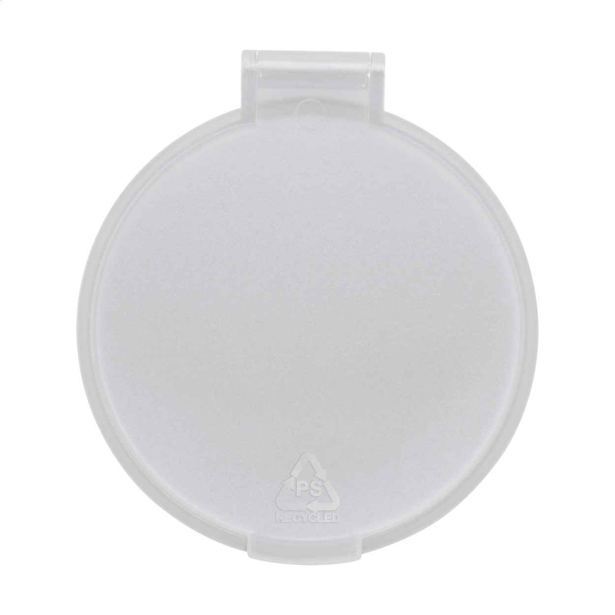 Kerek zsebtükör áttetsző, újrahasznosított PS tokban. Teteje