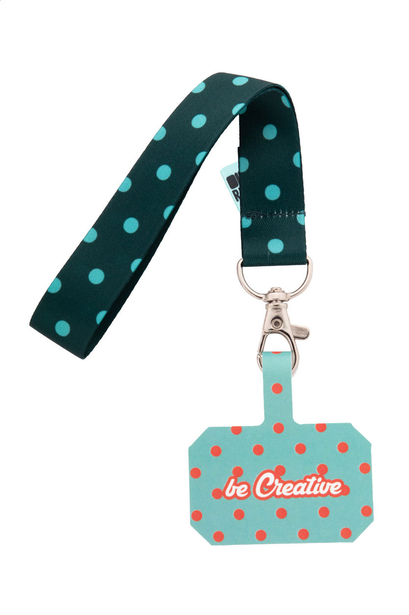 Egyediesíhető, RPET mobiltartós csuklópánt fém karabinerrel és full colour emblémázható telefontartóval, szakadásmentes papírból. Mindkét oldalán szublimációs emblémázással. Minimális rendelési mennyiség: 100 db. Külseje