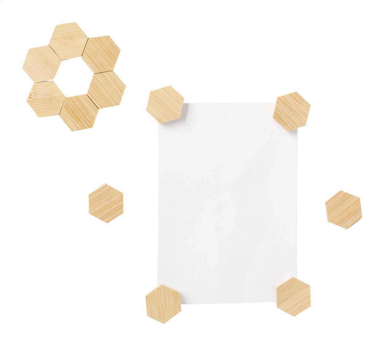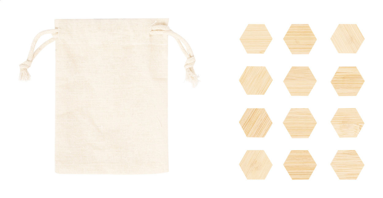 12 db-os bambusz hűtőmágnes készlet, pamut zsinóros tasakban. Tok