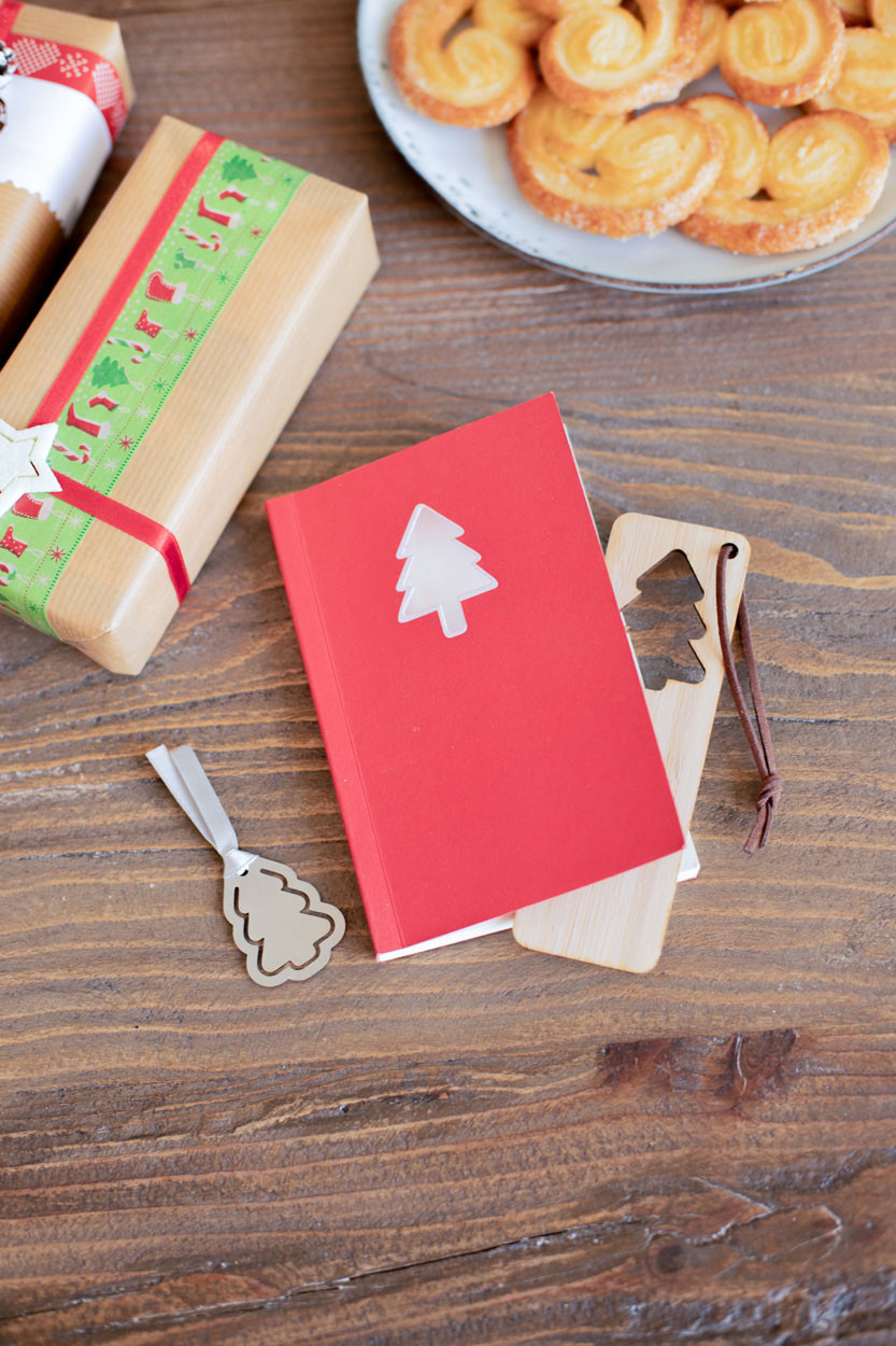Rétegelt bambuszból készült könyvjelző karácsonyi kivágással és PU bőr zsinórral. Eleje