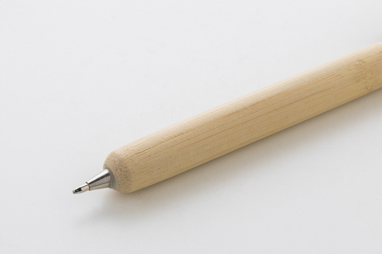 Bambuszból készült golyóstoll karácsonyi figurával a tetején. Kék tollbetéttel. Jobbkezes