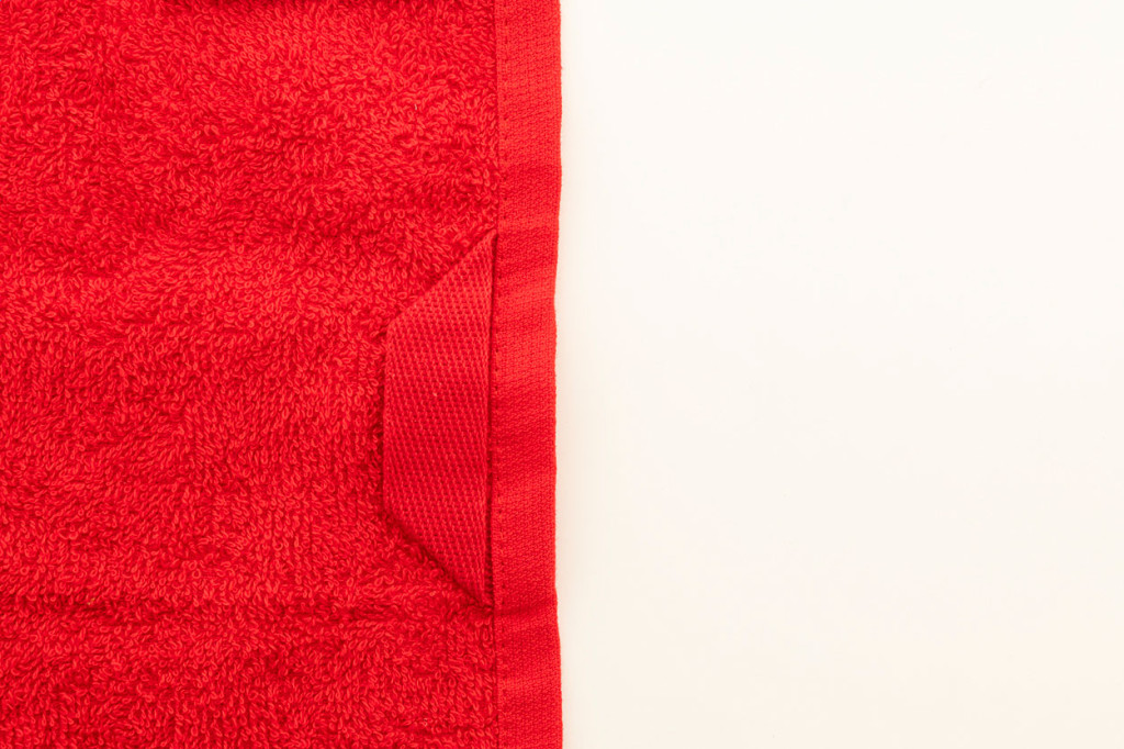 Pamut frottír vendégtörülköző akasztóval és nyomtatható szegéllyel. 100% pamut, 360 g/m². Eleje