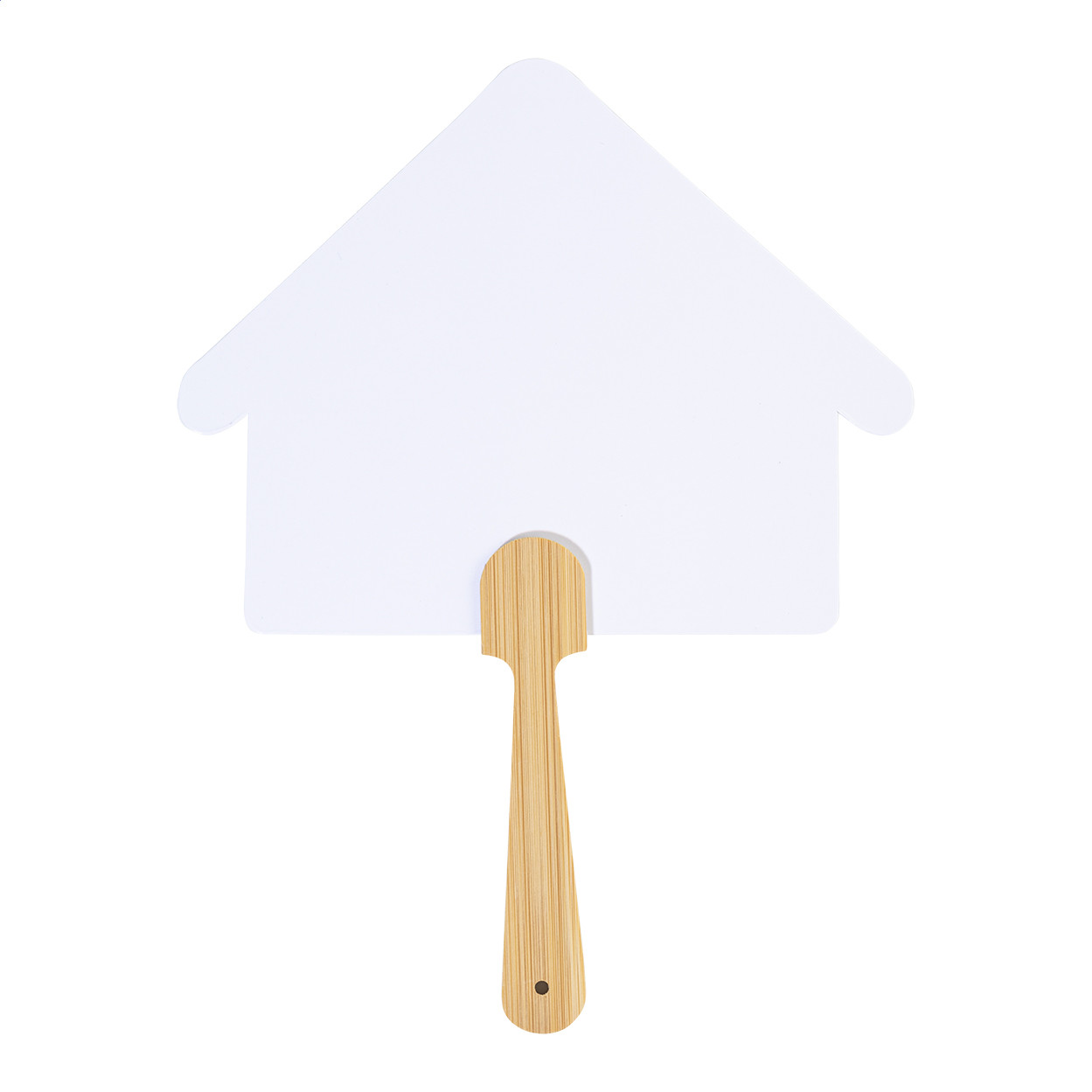 Egyedi gyártású kézi legyező bambusz nyéllel és laminált papírral. Digitális nyomtatással mindkét oldalán. Minimális rendelési mennyiség: 100 db.