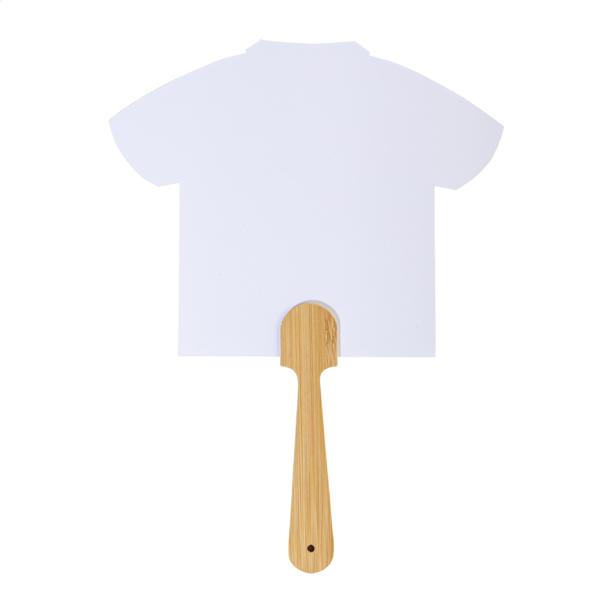 Egyedi gyártású kézi legyező bambusz nyéllel és laminált papírral. Digitális nyomtatással mindkét oldalán. Minimális rendelési mennyiség: 100 db. Eleje
