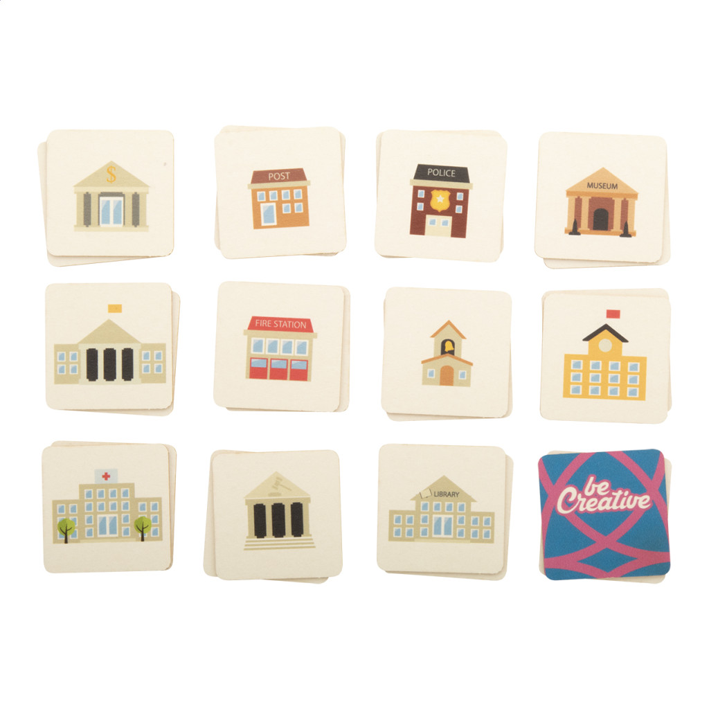 Kartonpapírból készült memóriajáték tematikus grafikával, egyedi papírdobozban. 24 lapka (40×40 mm). Az ár tartalmazza a full colour nyomtatás költségét az összes lapka hátoldalán és a dobozon. Minimális rendelési mennyiség: 100 db.