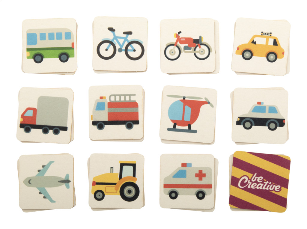 Kartonpapírból készült memóriajáték tematikus grafikával, egyedi papírdobozban. 24 lapka (40×40 mm). Az ár tartalmazza a full colour nyomtatás költségét az összes lapka hátoldalán és a dobozon. Minimális rendelési mennyiség: 100 db.