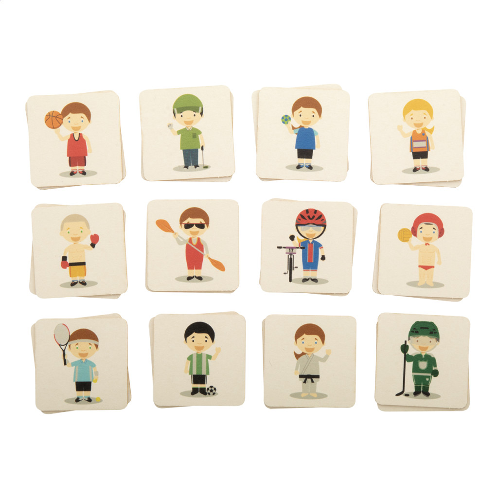 Kartonpapírból készült memóriajáték tematikus grafikával, egyedi papírdobozban. 24 lapka (40×40 mm). Az ár tartalmazza a full colour nyomtatás költségét az összes lapka hátoldalán és a dobozon. Minimális rendelési mennyiség: 100 db.
