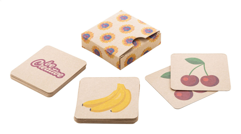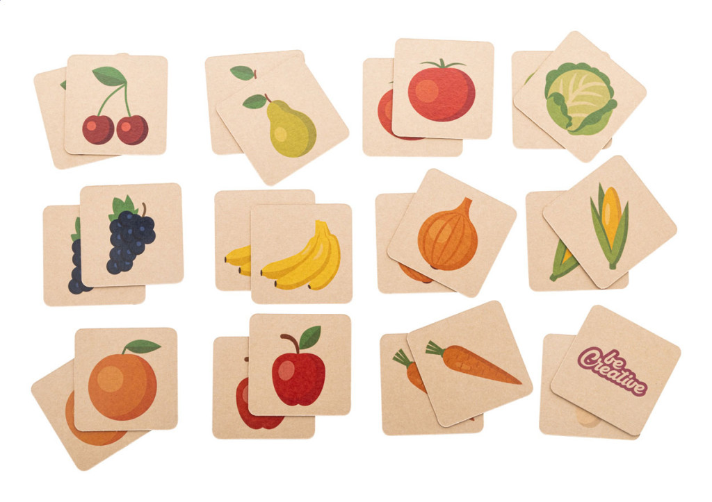 Kraft papír memóriajáték tematikus motívumokkal egyedi kraft papír dobozban. 24 lapkával (55x55 mm). Az ár tartalmazza a full colour nyomtatást az összes lapka hátoldalára és egy full colour nyomtatott dobozt.Minimális rendelési mennyiség: 100 db. Doboz