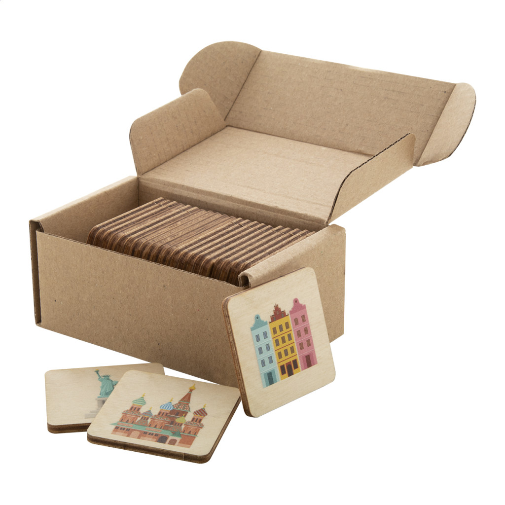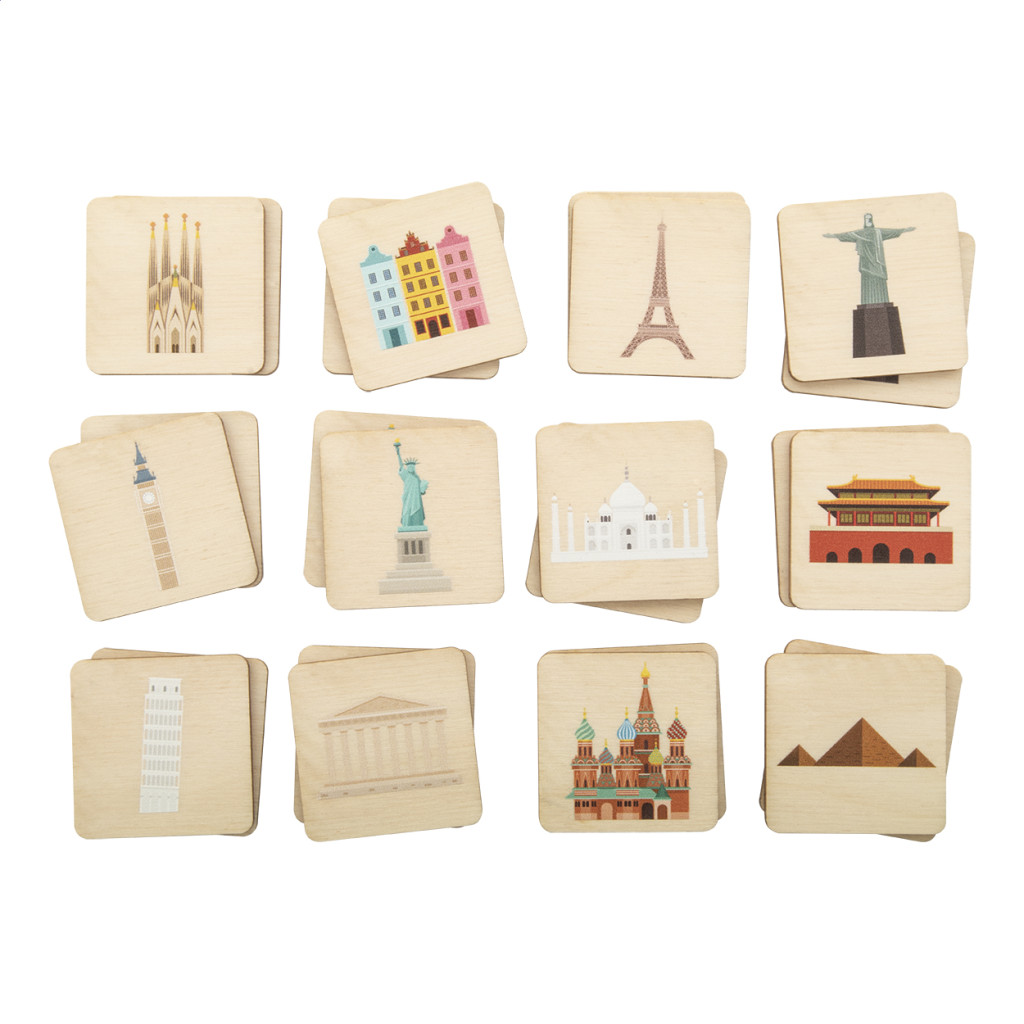 Rétegelt nyírfából készült memóriajáték tematikus figurákkal. 24 lapka (40×40 mm). Az ár tartalmazza az emblémázás költségét, 1 színnel nyomva az összes lapka hátoldalán. Minimális rendelési mennyiség: 50 db. Hátulja