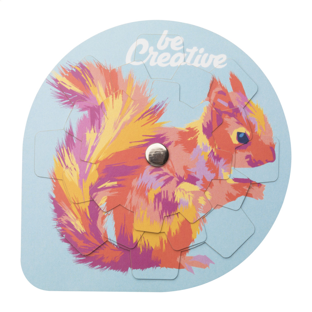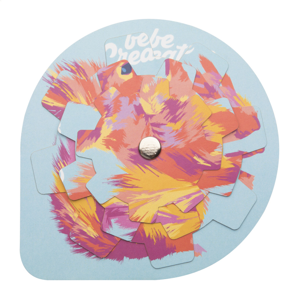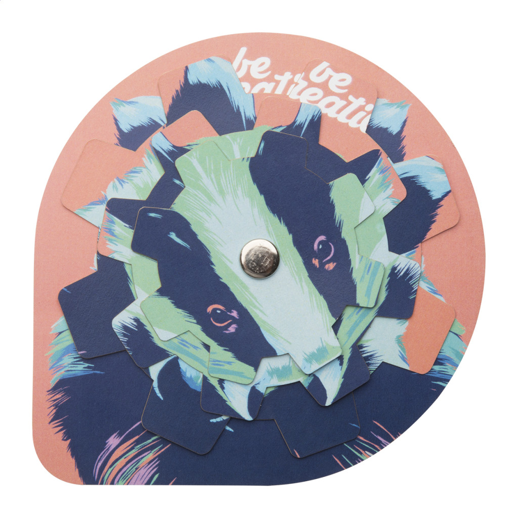 Egyedi gyártású papír puzzle 3 elforgatható réteggel. Forgasd úgy a rétegeket, hogy összeálljon a kép! Az ár tartalmazza a digitális nyomtatás költségét. Minimális rendelési mennyiség: 100 db. Eleje