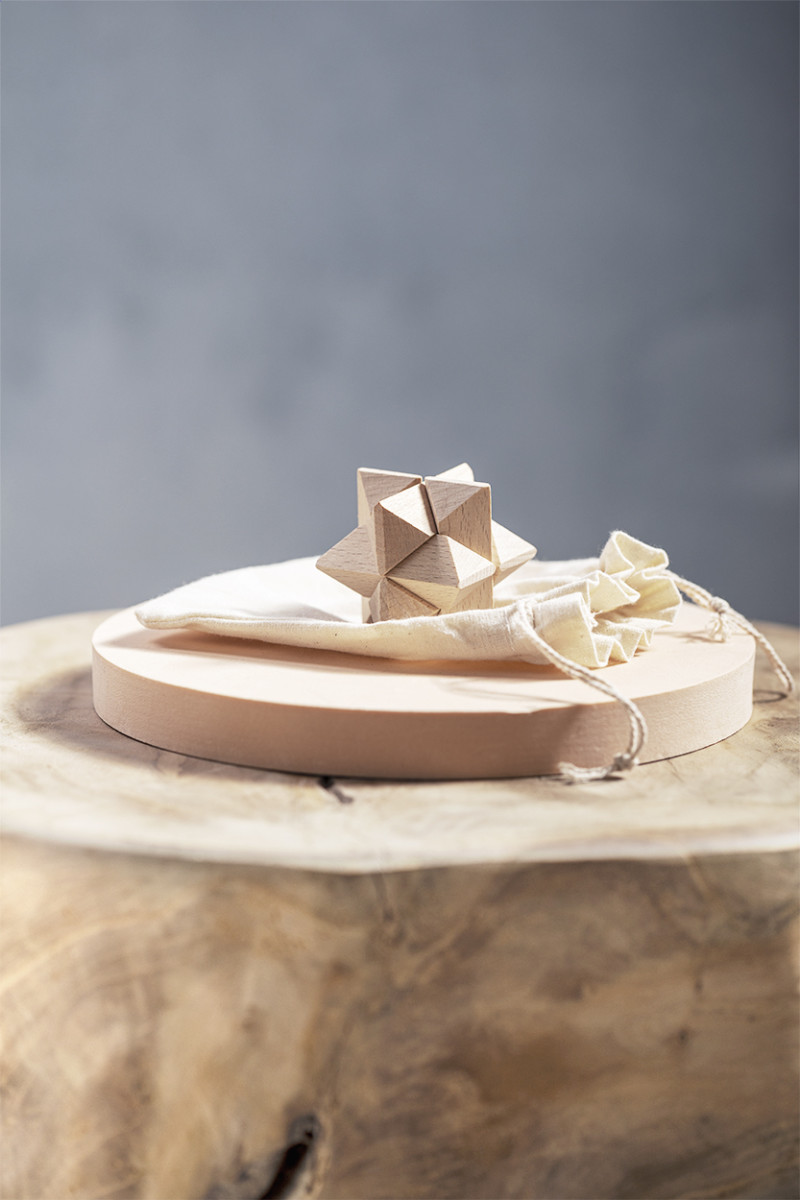 Fa ügyességi játék, pamut tasakban szállítjuk.