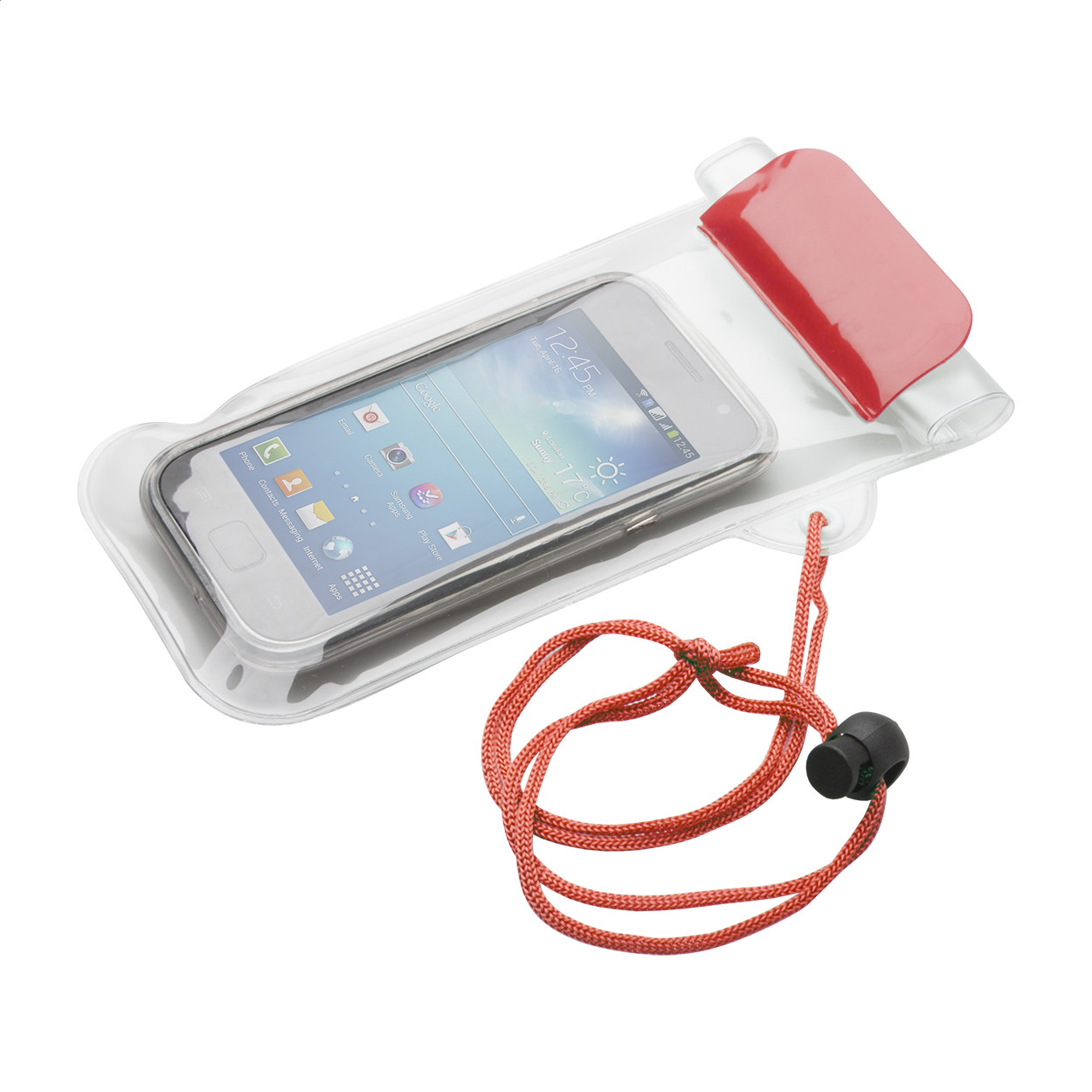 Vízálló, műanyag tasak, színes nyakba akasztó madzaggal. Teteje
