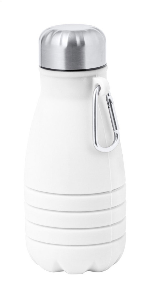 Szilikon, összecsukható sportkulacs rozsdamentes acél kupakkal és karabinerrel. 550 ml. Jobb oldal