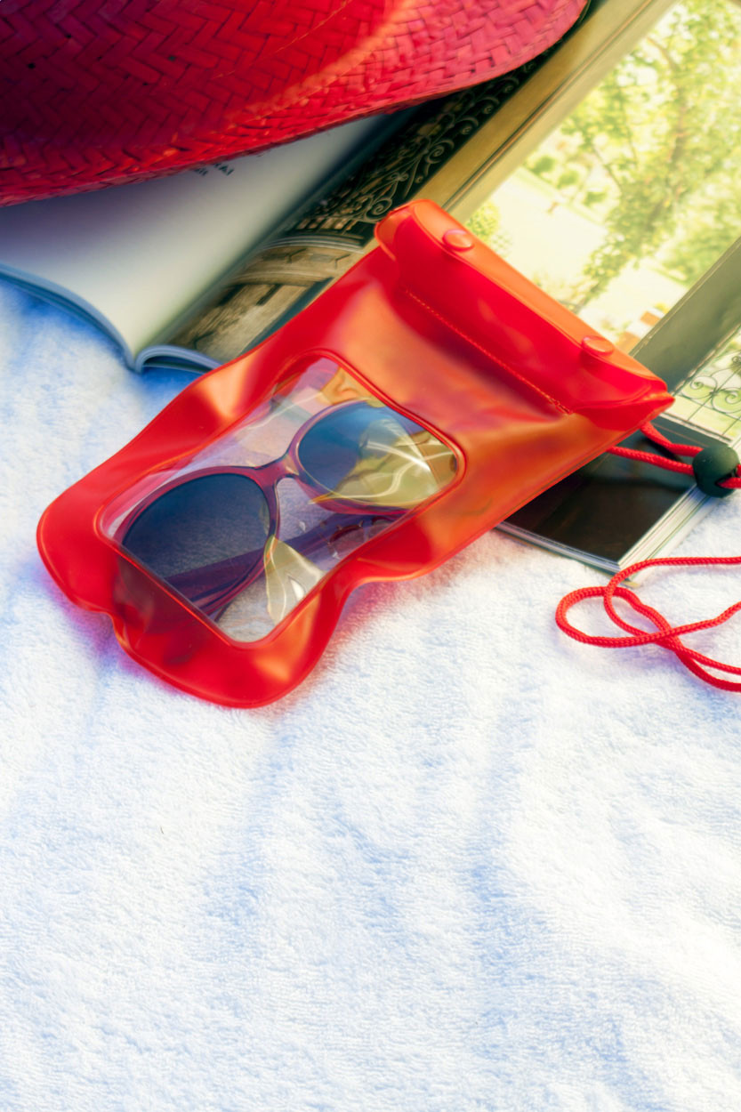 Vízálló mobiltartó szabályozható nyakpánttal. Anyaga: PVC.