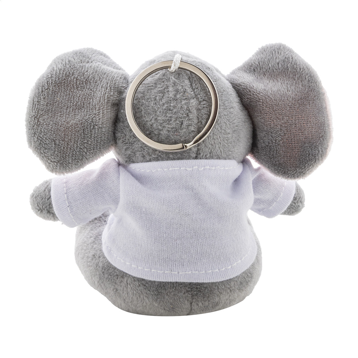 Plüss elefánt kulcstartó nyomtatható pólóval. Eleje