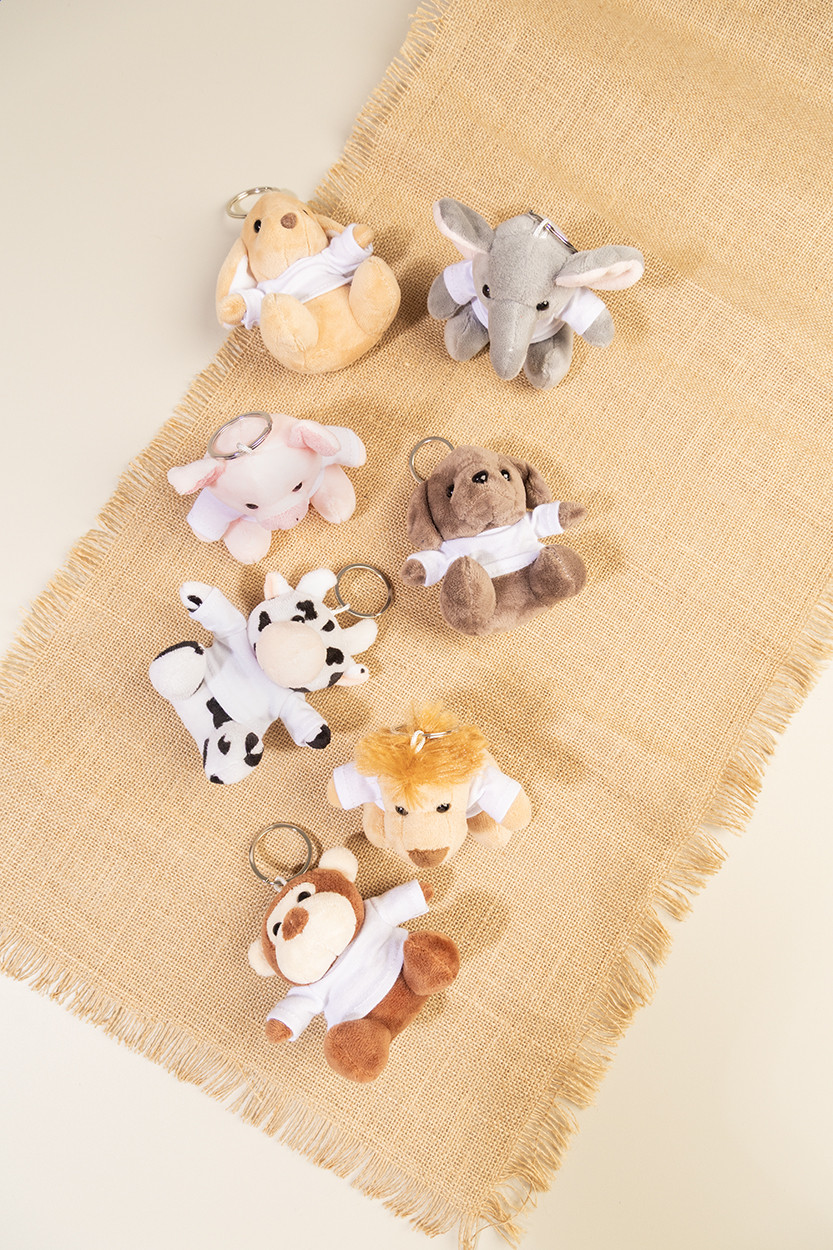 Plüss oroszlán kulcstartó nyomtatható pólóval. Eleje