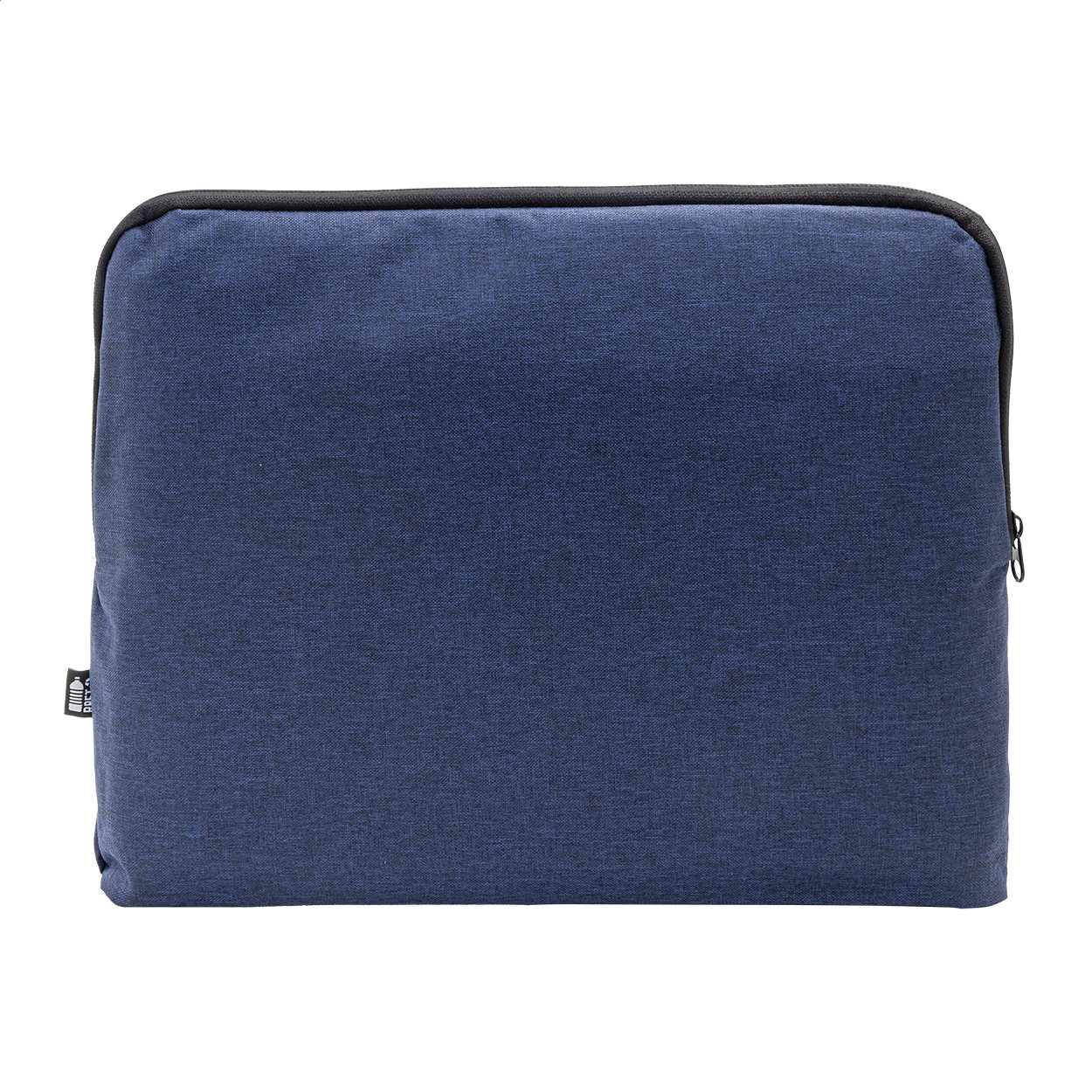 600D RPET poliészter laptoptáska cipzáras rekesszel és belső párnázással. Akár 15"-os laptopokhoz is alkalmas. Megkülönböztető RPET címkével. Eleje