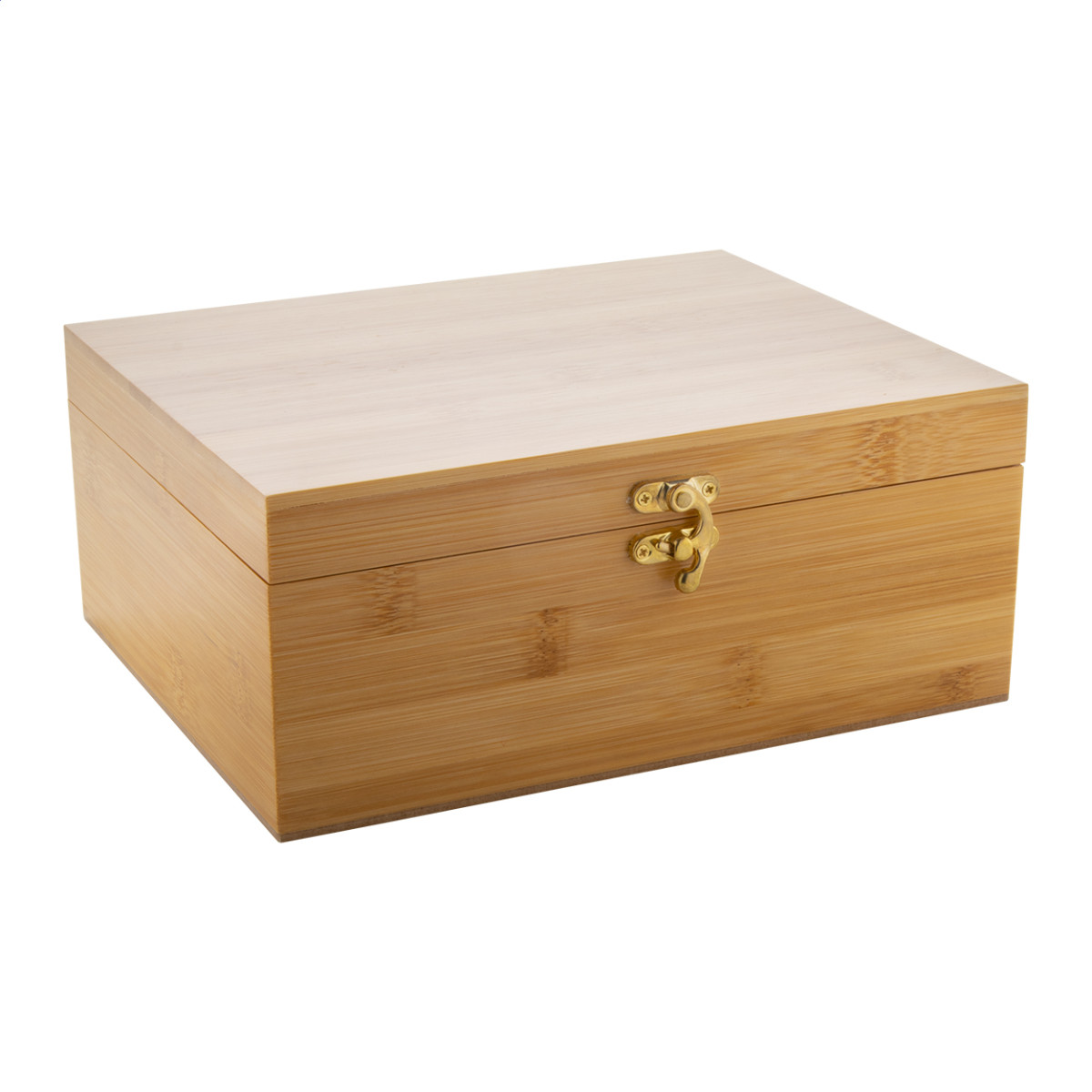 Luxus whisky szett bambusz dobozban. 2 üvegpoharat (250 ml), 8 újrahasználható kő jégkockát tasakban és egy rozsdamentes acél fogót tartalmaz. Pohár 1