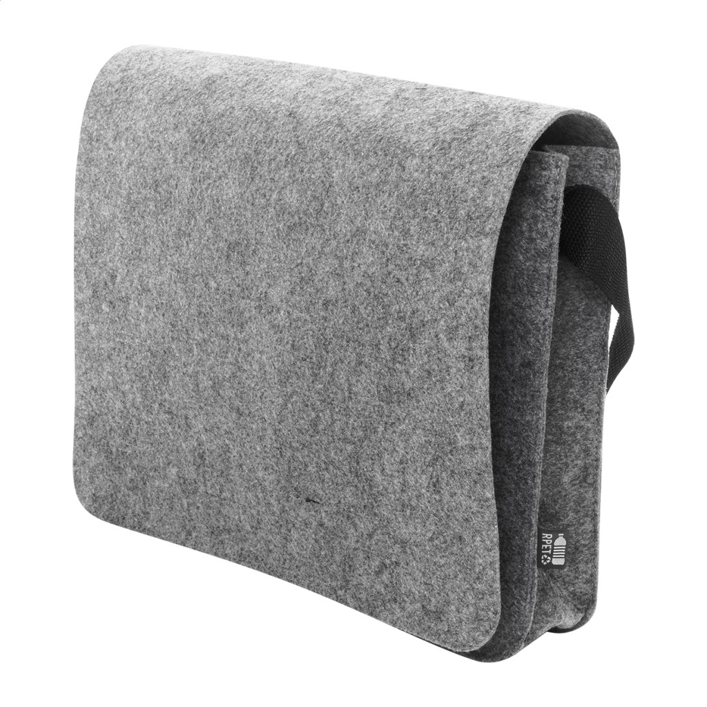 RPET filc messenger laptop táska állítható vállpánttal. Legfeljebb 15"-os laptopokhoz használható, megkülönböztető RPET címkével.