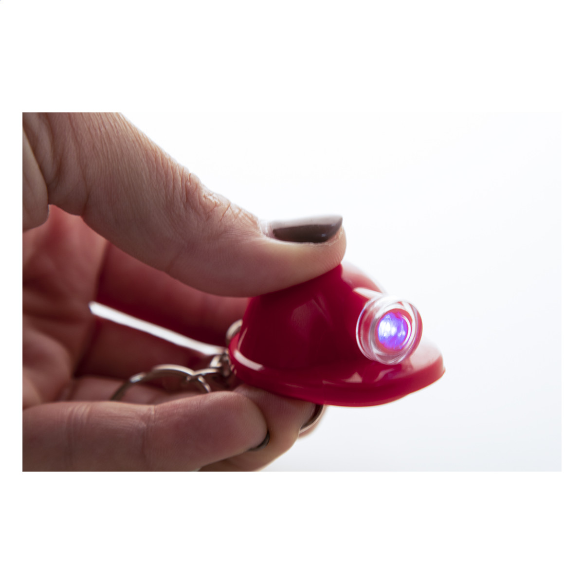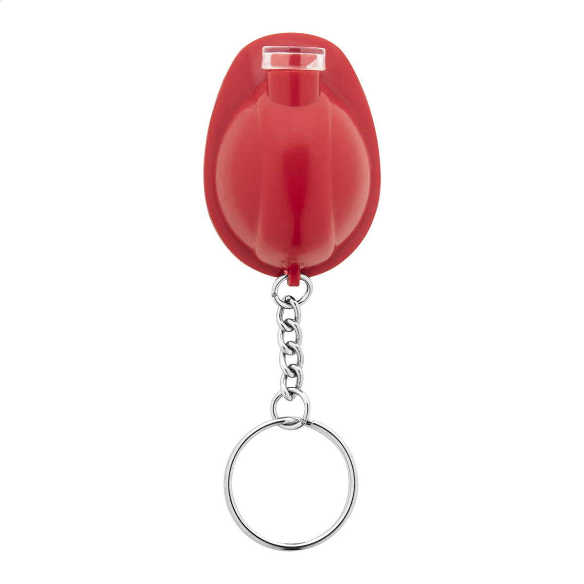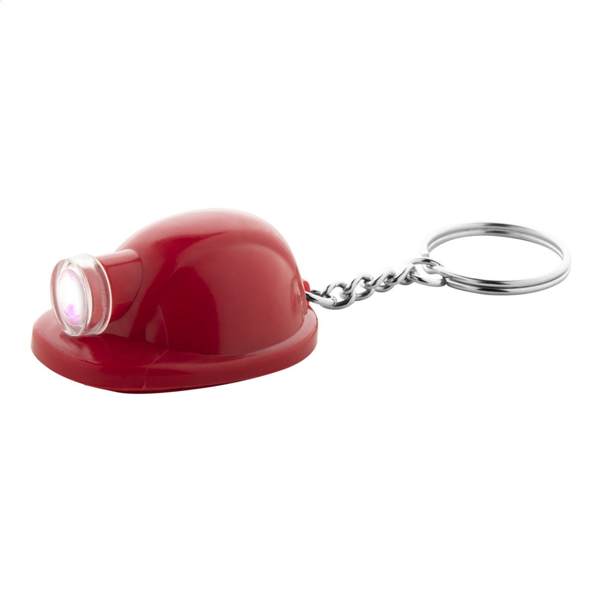Műanyag, biztonsági sisak formájú kulcstartó LED-es lámpával. Gombelemmel szállítjuk. Teteje